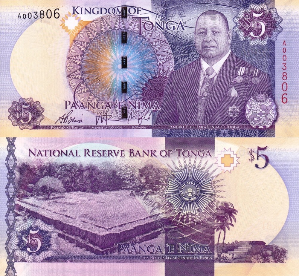 TONGA 5 pa'anga ND 2015 UNC!!!