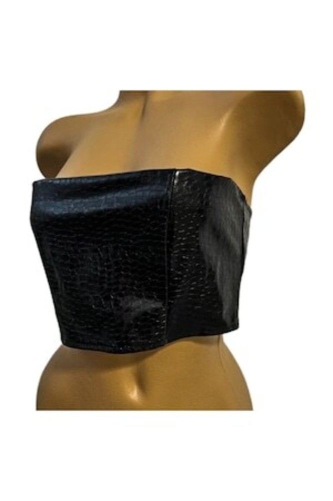 Top fără bretele cu imprimeu de șarpe, de culoare neagră.; Mărimea S INTL (echivalentul a 36 EU).; Fabricat din poliester, cu fermoar la spate.; Marcă: OEM.; Produsul vine cu o reducere de 10%, valabilă până la epuizarea stocului, și include o politică de returnare de 14 zile.; Sunt oferite opțiuni de livrare și garanții de conformitate.; Pentru detalii suplimentare, contactați vânzătorul Boutique Loop.