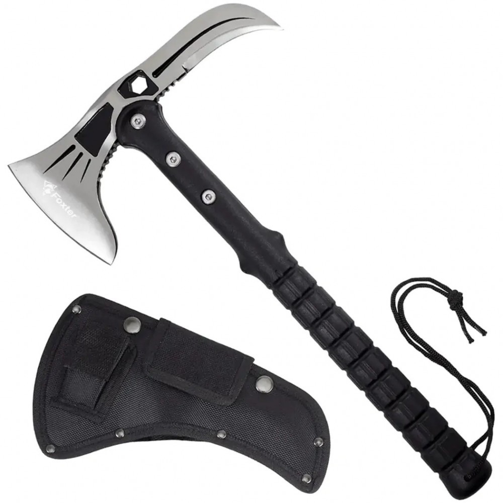 Topor pentru camping si drumetii Foxter, 41 cm, otel si plastic, husa lama