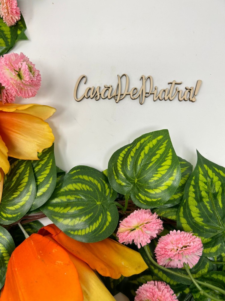 Topper cu textul ,,Casa de Piatra pentru aranjamente florale si torturi din lemn