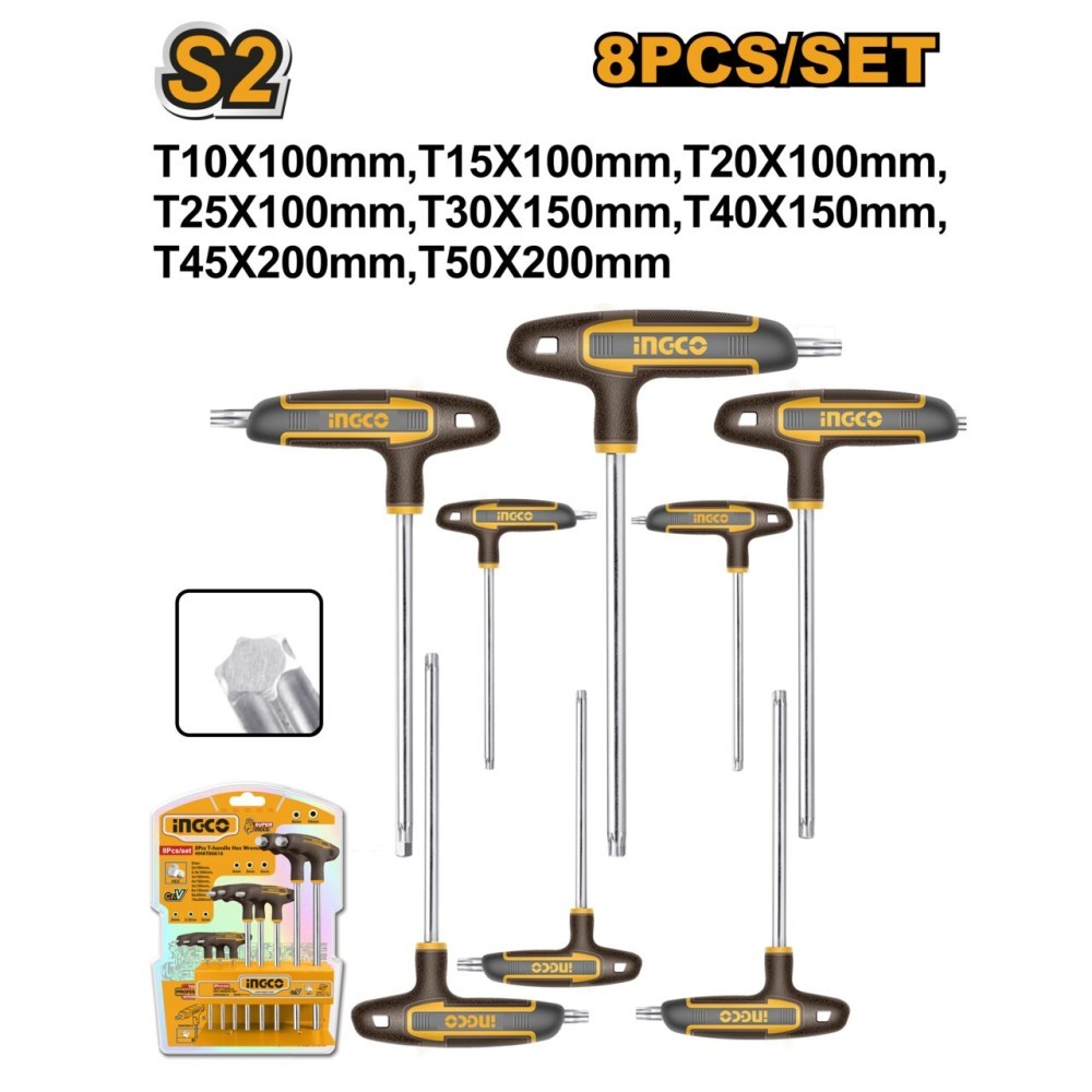 Set de 8 piese cu chei inelare tip T Dimensiuni: T10X75, T15X75, T20X100, T25X100, T30X150, T40X150, T45X200, T50X200 Material: Cr-V, tratat termic și placat cu crom<div class="long-description__content text-muted text-justify"><p><font style="vertical-align: inherit;"><font style="vertical-align: inherit;">Întreținerea echipamentelor și utilajelor</font></font></p><p><font style="vertical-align: inherit;"><font style="vertical-align: inherit;">Gaură de agățare la capătul mânerului pentru depozitare convenabilă</font></font></p><p><font style="vertical-align: inherit;"><font style="vertical-align: inherit;">Mâner ergonomic tricolor care se potrivește bine în mână</font></font></p><p><font style="vertical-align: inherit;"><font style="vertical-align: inherit;">Forjată din oțel S2, rezistență ridicată, duritate și elasticitate bune</font></font></p></div>
