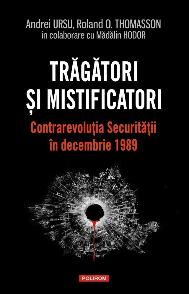 Prefata de Dennis Deletant Ziua in care dictatura comunista a fost inlaturata in Romania, 22 decembrie 1989, si cele care au urmat stirnesc si astazi controverse cu privire la ceea ce s-a intimplat de fapt. O problema ramasa inca fara raspuns si care alimenteaza disensiuni intre sustinatorii diferitelor teorii despre cele petrecute este identitatea teroristilor care au deschis focul asupra civililor si a militarilor dupa fuga dictatorului. Andrei Ursu, Roland O. Thomasson si Madalin Hodor analizeaza rolul jucat de institutiile de forta ale tarii inainte si dupa caderea regimului comunist, reconstituind momentele-cheie pe baza unor marturii ale celor care s-au aflat in mijlocul Revolutiei si a unor documente de arhiva recent descoperite. Cu ajutorul acestora se aduc noi dovezi care, coroborate, sustin ideea ca impuscarea revolutionarilor dupa 22 decembrie nu a fost „foc fratricid” cauzat de panica si haosul acelor zile, ci urmarea unui scenariu dintr-un plan pus la punct cu citiva ani inainte. La trei decenii dupa caderea comunismului, Tragatori si mistificatori arunca o noua lumina asupra acelor evenimente singeroase si face un pas important catre aflarea adevaratilor vinovati de ranirea si uciderea unor oameni in lupta pentru libertate a romanilor.