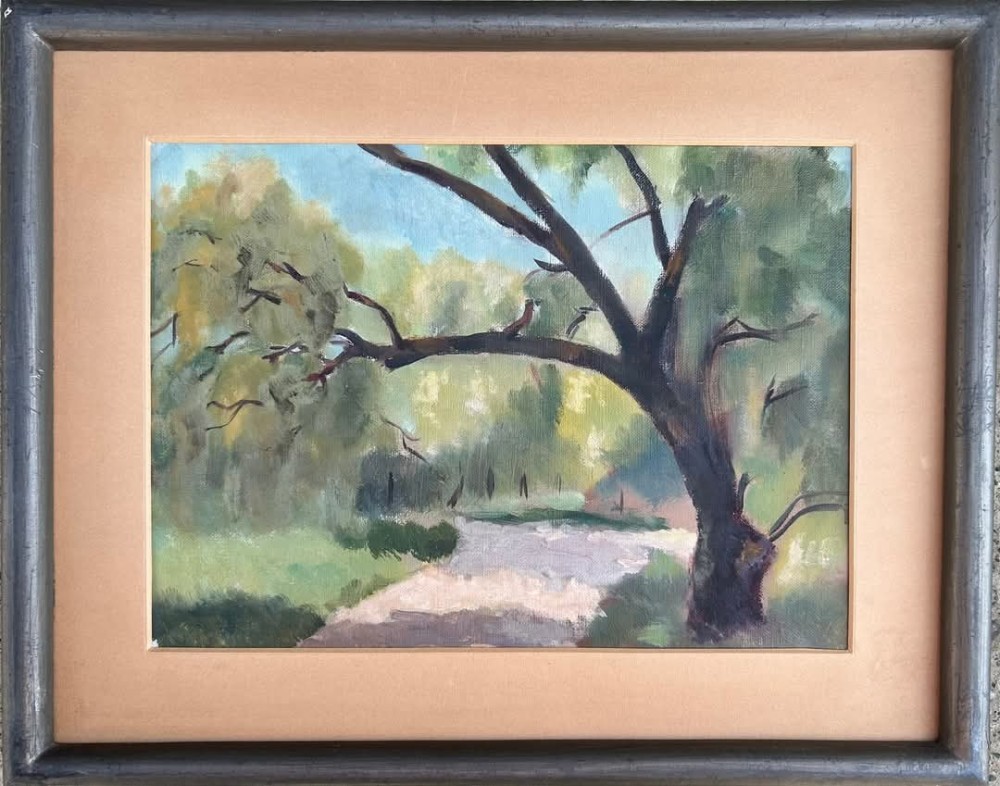 Traian Sfintescu (1905-1959) Tablou Peisaj interbelic bucureștean “Alee în Cismigiu”, pictura ulei pe pânză inramata 39x49 cm