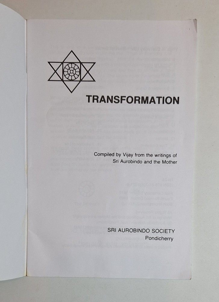 Transformation – Aut. Sri Aurobindo & The Mother, comp. Vijay, Sri Aurobindo Society, Pondicherry