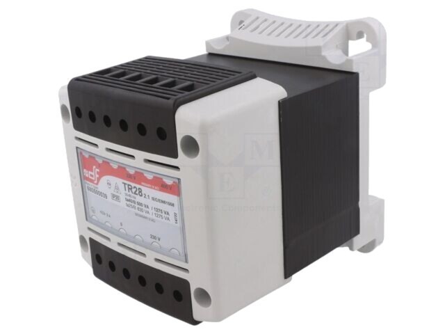 Transformatorul DF ELECTRIC 500VA 230/400V pentru șină DIN, model TR28 2.1, este proiectat pentru performanță și durabilitate în aplicații industriale și comerciale. Cu o putere nominală de 500VA, oferă o soluție eficientă de alimentare, având tensiuni primare multiple de 230V AC și 400V AC și o tensiune secundară de 230V. Montarea pe șină DIN și versiunea încastrată facilitează integrarea rapidă și sigură în tablourile electrice. Terminalele cu bandă și cleme asigură conexiuni stabile și ușor accesibile. Dimensiunile exterioare compacte, de 120x152x156mm, permit instalarea în spații restrânse, menținând un design ergonomic. Clasa de etanșeitate IP20 protejează împotriva pătrunderii corpurilor solide, iar clasa termică Ta130B garantează funcționarea stabilă la temperaturi ridicate. Clasa de izolație B asigură siguranță și rezistență în exploatare. Acest transformator este o alegere robustă, conformă cu standardele moderne, oferind fiabilitate și eficiență în orice configurație electrică.
