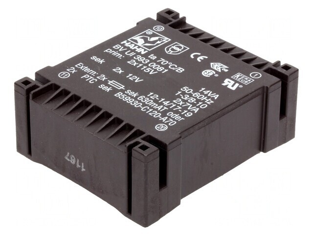 Transformator încapsulat 14VA 115VAC 12V 583mA de la HAHN este soluția ideală pentru aplicații electrice ce necesită o alimentare sigură și eficientă. Acest transformator de înaltă calitate este proiectat pentru montare pe PCB și oferă performanțe deosebite în condiții variate de utilizare.