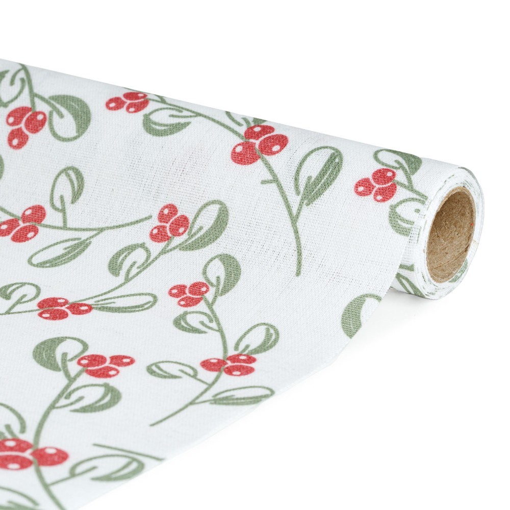 Aceasta traversa de masa decorativa adauga o nota de eleganta si rafinament oricarui spatiu. Cu un design inspirat din natura, modelul cu vâsc pe fundal alb aduce un aer cald si placut, potrivit pentru decoruri sezoniere sau pentru mesele speciale din familie.