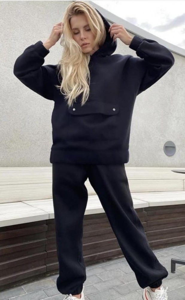 Set de dama cool din 2 piese negru, croit din material gros, ideal pentru zile friguroase. Compus din pantaloni si hanorac cu gluga calduroasa. Pantaloni au talia si baza pantalonilor elastica si buzunare laterale.. Hanoracul cu gluga are maneci lungi cu bordura reiata si buzunar frontal cu clapeta si capse. Acest compleu este unul owersize, perfect pentru sezonul actual. Designul lejer se pliaza perfect pentru femeia actuala, activa. Un duo indispensabil versatil care se remarca atat prin calitatile sale de design cat si prin cele termice. Mixeaza compleul cu accesorii urban cool care sa sustina un look casual elaborat. Se poate combina si accesoriza foarte usor cu pantofi sport sau bascheti, de ce nu si cu bocanci. Compleul perfect pentru acest sezon. Cauti compleu pantaloni si hanorac negru? Iti propunem aceast compleu bej trendy in care cu siguranta vei intorce cele mai multe priviri! Compleu negru, hanorac si pantaloni din bumbac calduros.. La MAD DiVA gasesti o gama larga de compleuri din trei piese,compleu din doua piese, compleuri de toamna, compleuri de vara, compleuri in culori neon, compluri tricotate, compleuri cu camasa si fusta, compleuri 2021, compluri pentru evenimente speciale, compleuri cu imprimeu, compleuri cu aplicatii din dantela, compleuri cu volanase, compleuri cu vesta si pantaloni scurti.