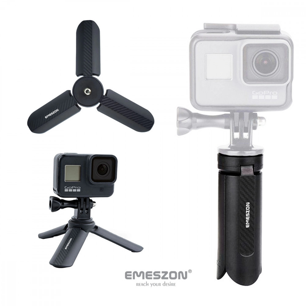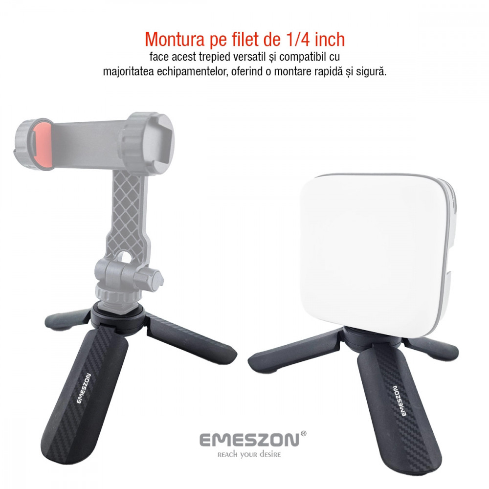 Trepied Mini TM-01 EMESZON®, filet 1/4 inch, model fibra carbon, compatibil cu multiple accesorii pentru Foto si Video, negru