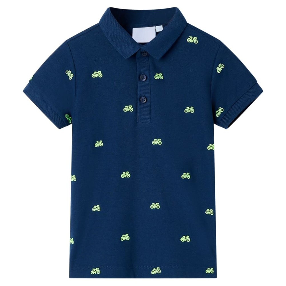 Acest tricou polo pentru copii are mâneci scurte, fentă cu nasturi și guler cu striații. Tricoul polo pentru copii are un imprimeu cu biciclete mici peste tot. Tricoul polo pentru copii este realizat din bumbac 100%, pentru o atingere moale și confortabilă.