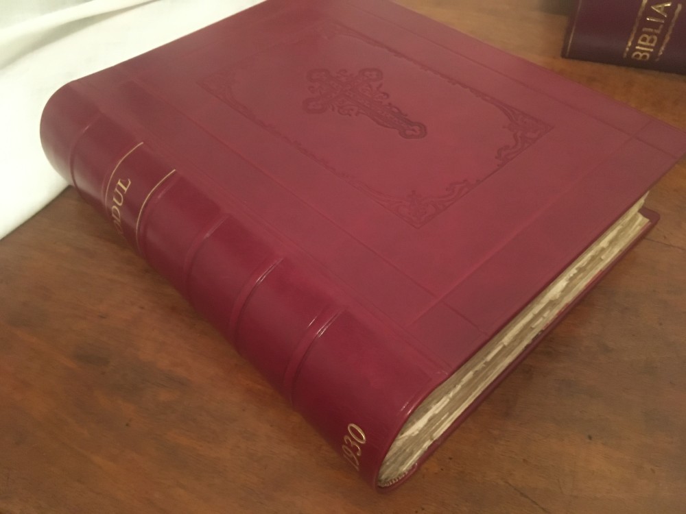 TRIODUL 1930 TIPARIT IN ZILELE REGELUI CAROL II SUB PASTORIREA PATRIARHULUI MIRON. RECONDITIONAT- COPERTI PIELE FORMAT MARE 33 X 26 X 6 CM. 796 PAGINI