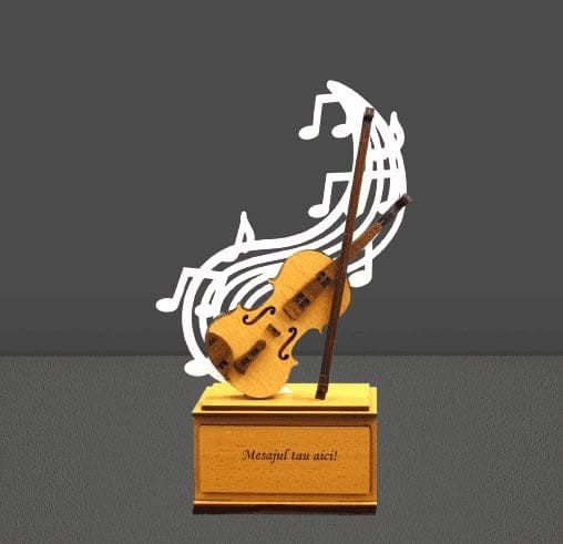 Trofeu vioara Adaugă un plus de eleganță și originalitate premiilor muzicale cu acest trofeu în formă de vioară, realizat din lemn de calitate si acril, decupat cu precizie laser. Designul său artistic evidențiază frumusețea și rafinamentul muzicii clasice, fiind alegerea perfectă pentru concursuri de vioară, evenimente muzicale, festivaluri sau cadouri personalizate pentru profesori și pasionați de muzică. Fabricat din lemn de calitate, cu finisaje fine și detalii atent lucrate, acest trofeu combină durabilitatea cu un aspect autentic, natural. Poate fi personalizat cu text gravat, logo sau plăcuță cu numele câștigătorului, transformând fiecare piesă într-un suvenir unic și memorabil. Caracteristici cheie: Decupare precisă cu laser pentru un contur perfect Dimensiuni personalizabile Posibilitate de gravare text sau logo Ideal pentru evenimente muzicale, concursuri de vioară, școli de muzica Trofeu vioară din lemn si acril decupat cu laser – eleganță artistică pentru premii muzicale Răsplătește excelența în muzică cu un trofeu cu adevărat special: trofeul vioară din MDF decupat cu laser, un simbol al rafinamentului și pasiunii pentru artă. Creat din lemn de calitate superioară și finisat cu grijă, acest trofeu impresionează prin designul său detaliat, inspirat din formele clasice ale viorii. Fie că organizezi un concurs muzical, un recital sau dorești să oferi un cadou memorabil unui profesor sau elev pasionat de vioară, acest trofeu reprezintă alegerea ideală. Tehnologia de decupare laser permite contururi precise și personalizare exactă, de la gravuri cu nume și mesaje, până la logouri sau embleme tematice. Avantaje principale: Design artistic inspirat din forma viorii Decupare cu laser pentru detalii impecabile Posibilitate de personalizare completă (text, logo, plăcuță) Ideal pentru școli de muzică, festivaluri, gale sau cadouri tematice