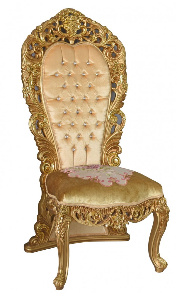 Tron baroc din lemn masiv auriu cu tapiterie aurie cu flori BAR039A06