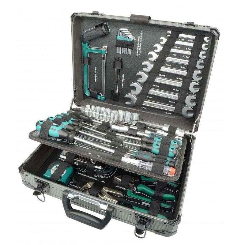 - Trusa de scule robusta, fabricata din aluminiu, cu 133 de unelte si consumabile