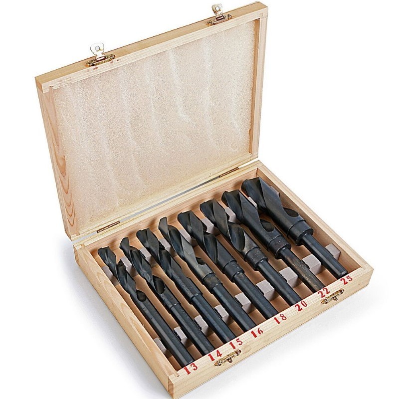 Burghiele conice sunt ideale pentru realizarea unor găuri de dimensiuni progresive, permițând ajustarea ușoară a diametrului în funcție de necesitățile lucrării. Setul conține burghie de 13mm, 14mm, 15mm, 16mm, 18mm, 20mm, 22mm și 25mm, oferind versatilitate în prelucrarea metalelor. Aceste burghie sunt livrate într-o cutie din lemn, care asigură o depozitare sigură și ordonată a acestora.