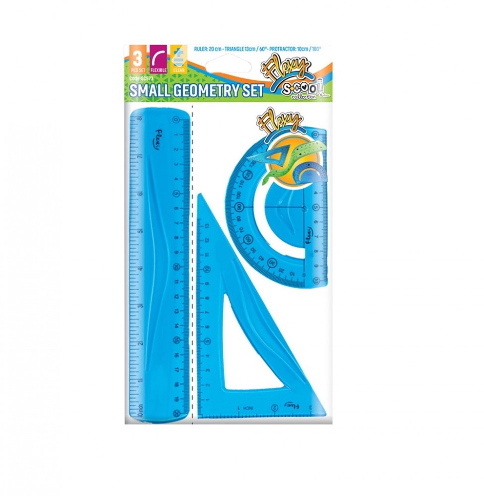 Trusa geometrie flexibila, 3 piese, Albastru, 7Toys
