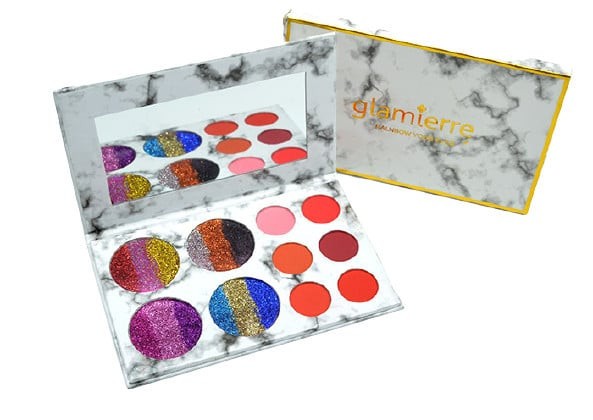 Trusa Glamierre are 12 nuante superbe de glitter si 6 nuante cu pigment ultra-cremos ce poate fi folosit atat ca blush cat si ca fard de pleoape pentru a scoate in evidenta nuanta ochilor indiferent care ar fi aceasta.Lipici pentru glitter nu este necesar. Atât nuantele mată, cât și cele strălucitoare se aplică ușor și se amestecă perfect.