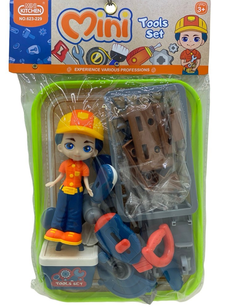 Trusa scule de jucarie cu papusica baiat si multiple accesorii