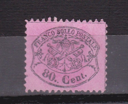 TSV @ - 1868 MICHEL 25, STATUL PAPAL, 80 cent, fara guma, MH/*
