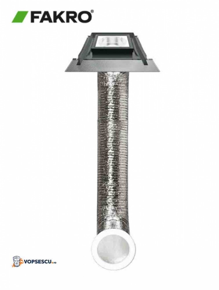 Tunel de lumina FAKRO SFF pentru acoperis terasa – Dispune de un tub flexibil confectionat din poliester metalizat si reflectorizant, si este intarit cu un arc metalic spiralat ce reprezinta solutia ideala pentru distante scurte si cu obstacole. Caracteristici: Tunel de lumina pentru acoperis terasa Pachetul include plafoniera cu difuzor prismatic Gama larga de accesorii suplimentare Lungimea standard a tubului este de 210 cm Echipat cu o cupola confectionata din policarbonat, rezistenta la radiatii UV Unghiul de instalare: 0-15°