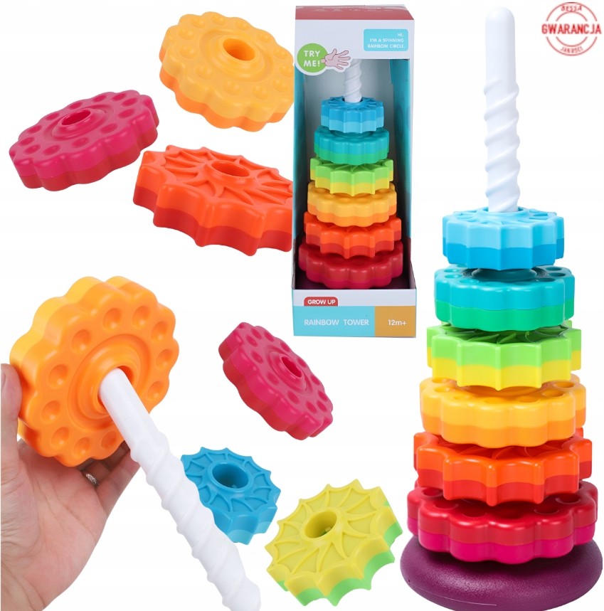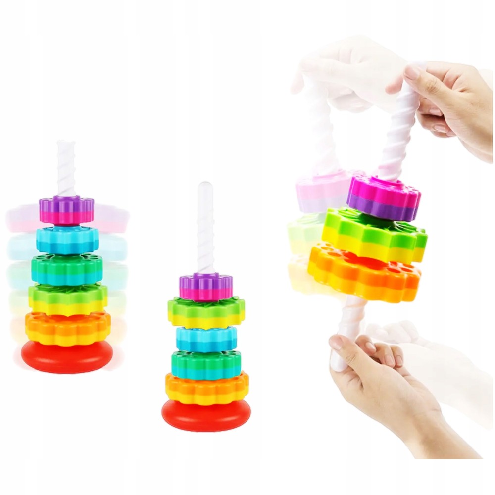 TWISTED TOWER PYRAMID GEAR WHEELS SPIRAL SENSORY STACKING SORTING TOY
