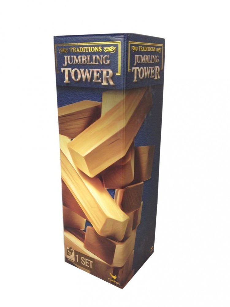 Se joaca cu 39 de blocuri de lemn care sunt puse intr-o formatiune turn. Fiecare etaj este format din 3 blocuri unul langa celalalt iar urmatorul etaj va fi pozitionat perpendicular pe cel anterior. Vor exista asadar 16 etaje in turnul Jenga Jumbling Tower. Odata ce turnul a fost construit, persoana care l-a construit incepe prima. Miscarea la Jenga reprezinta extragerea unui bloc de pe orice etaj cu exceptia ultimului construit si pozitionarea acestuia pe ultimul etaj pentru a-l completa. Numai o mana poate fi folosita pentru a indeparta un bloc ambele maini pot fi folosite dar doar una poate fi pe turn la un moment dat. Blocurile pot fi inghiontite pentru a elibera un bloc slab sustinut si care nu deranjeaza restul turnului. Orice bloc mutat din spatiul sau poate fi lasat asa daca se concluzioneaza ca va darma turnul daca se misca. Jocul se termina cand turnul se prabuseste cu alte cuvinte, orice alta piesa care cade din turn, inafara celei scoase pentru a fi mutata. Pierzatorul este cel care a cauzat prabusirea iar cel care a mutat inaintea pierzatorului este castigatorul Vârsta de la: 6 ani Greutate produs: 0.54 Culoare produs: Multicolor GPSR info: NERECOMANDAT COPIILOR SUB 36 LUNI. PIESE DE MICI DIMENSIUNI. PERICOL DE ASFIXIERE.