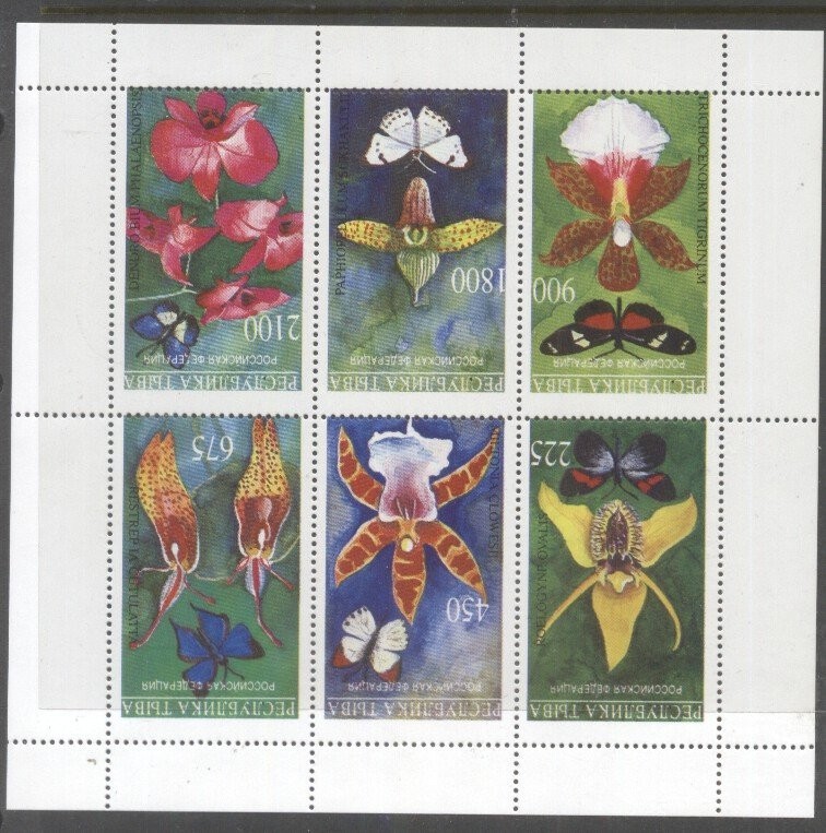 Tuva 58-65 Russian local - Butterflies Orchids sheet of 6 MNH DA.148