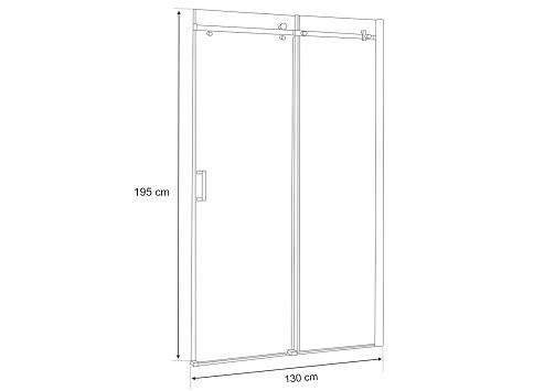 Ușa de duș este echipată cu un profil de perete din aluminiu cromat și sticlă securizată transparentă de 8 mm. Modelul are o lățime de 130 cm și o înălțime de 195 cm.