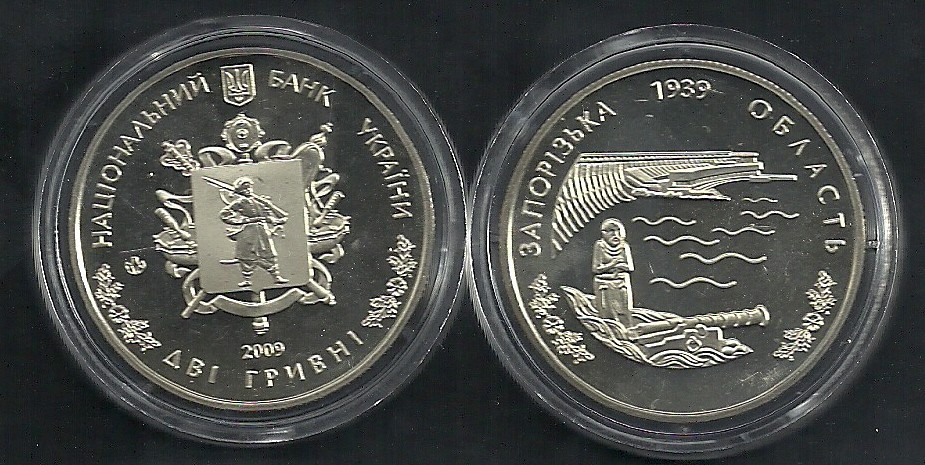 UCRAINA 2 GRIVNE HRIVNE 2009 , 70 Ani de la Infiintarea Regiunii Zaporizhzhia