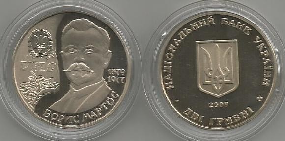 UCRAINA 2 GRIVNE HRIVNE 2009 , Personalitati : BORIS MARTOS , UNC