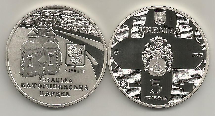 UCRAINA 5 HRIVNE 2017 , BISERICA CATHERINA din CHERNIHIV , PROOF - capsula