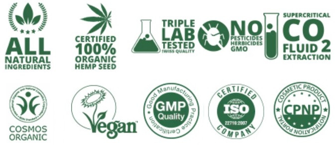 Produsele sunt testate în profunzime, analizate și înregistrate în Elveția, atât pentru raportul cannabioid cât și pentru caracterul microbiologic adecvat.