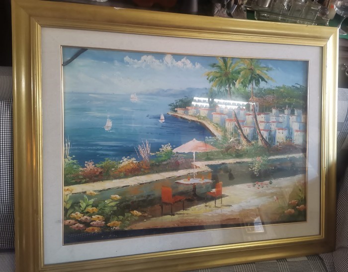 Ulei pe pânză peisaj meditarean o lucrare veche de o foarte buna