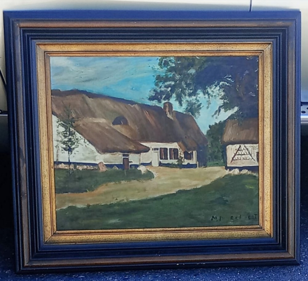 Ulei pe panza o lucrare foarte veche semnată încadrata într-o ramă din lemn masiv foarte lata