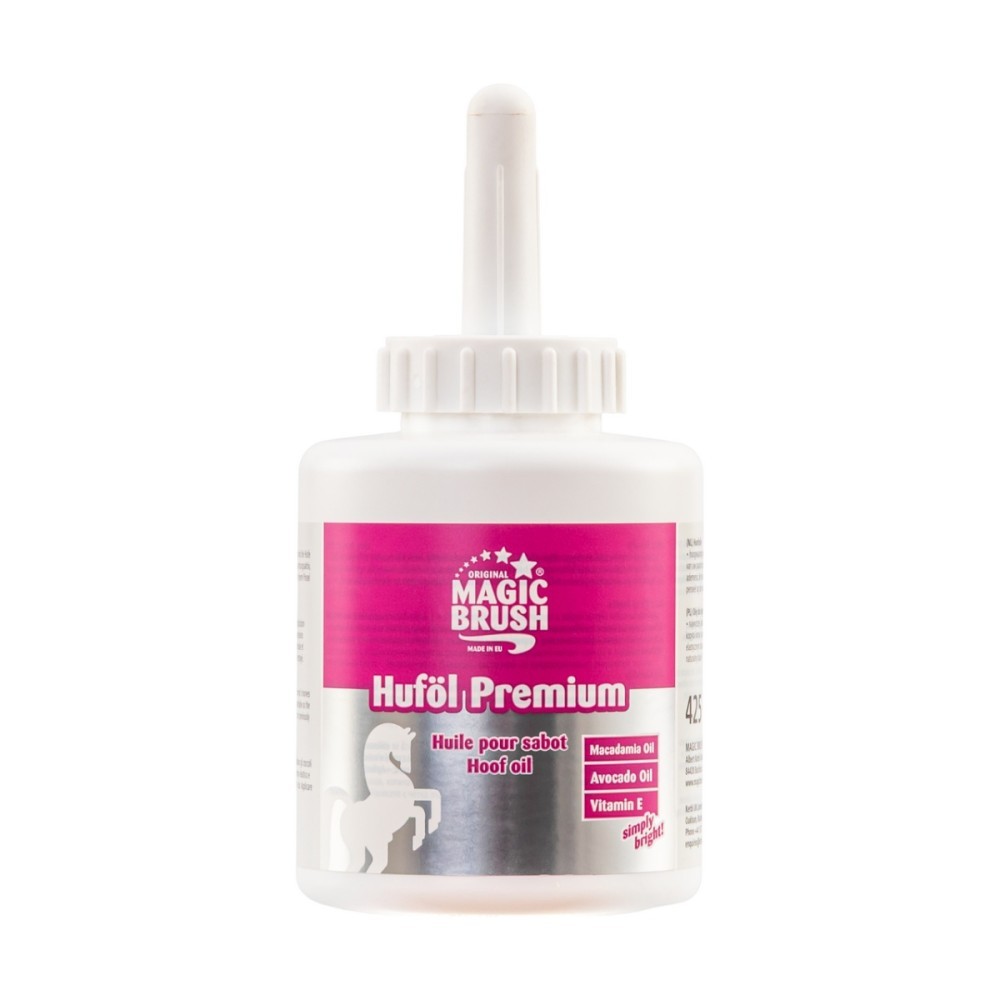 Ulei MagicBrush pentru îngrijirea și protejarea copitelor cabalinelor. Volum: 425 ml. Uleiul MagicBrush pentru copite este un produs pentru îngrijirea și protejarea copitelor calului. Formulat cu uleiuri de înaltă calitate, precum ulei de dafin, de avocado și de macadamia, acest produs hrănește în profunzime copita. Aplicarea regulată asigură copite sănătoase și rezistente. Pentru cele mai bune rezultate, se recomandă utilizarea acestui produs în combinație cu o îngrijire corespunzătoare a copitelor și o dietă echilibrată a calului. Volum: 425 ml.