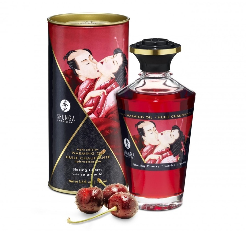 Ulei afrodisiac cu aroma de cirese, potrivit pentru stimularea zonelor erogene. Formula sa pe baza de ingrediente organice se aplica usor pe piele, fara a lasa pelicula neplacuta. Mirosul afrodisiac trezeste simturile, in timp ce efectul de incalzire intensifica senzatia de placere. Mod de utilizare: Se aplica o mica cantitate pe zona dorita si se maseaza usor, pana ce produsul intra in piele. Imediat dupa aplicare, sufla usor peste zona unde ai aplicat uleiul pentru a activa efectul de incalzire. Acest produs este comestibil. | Cantitate: 100 ml | Efect incalzire: Da | Aroma: Cirese