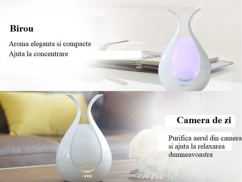 Bucurati-va de SERENITATE si LINISTE ! Difuzorul nostru exclusiv de aromoterapie din sticla 3D va ajuta sa va imbarcati intr-o aventura unica prin mirosurile revigorante ale uleiurilor esentiale, in timp ce minunatele lampi cu LED-uri va vor oferi un spectacol de lumina uimitor si de neegalat cu nenumarate variante de culoare. Tot ce trebuie sa faceti este sa stingeti luminile din incapere, sa va lasati purtat de mirosurile linistitoare si luminile de calmare care va ajuta sa eliberati toata tensiunea unei zile grele la locul de munca.
