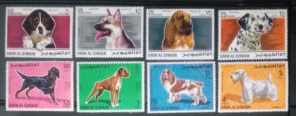 Umm al Qwain 1967 câini de rasă , fauna animale , serie 8v neștampilata