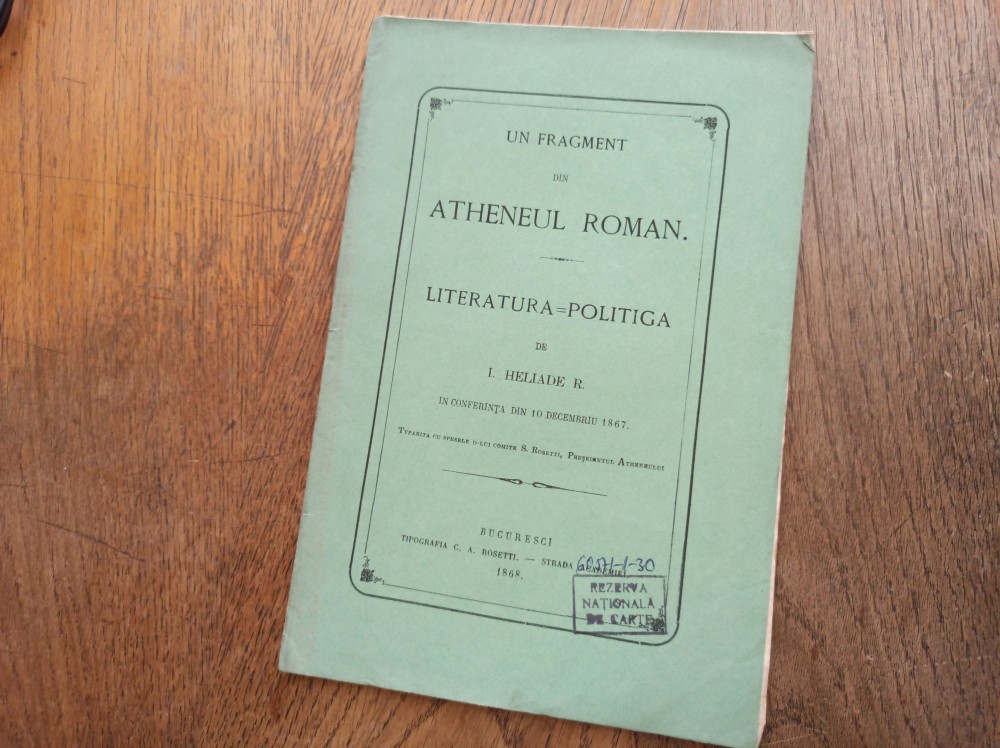 UN FRAGMENT DIN ATHENEUL ROMAN I.HELIADE RADULESCU , 1868