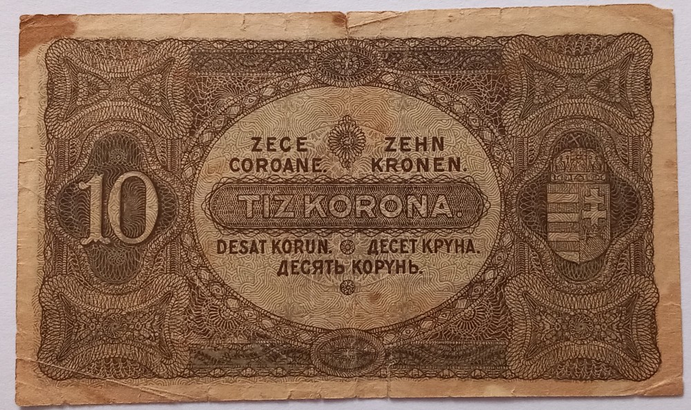 Ungaria , 10 Coroane 1920, stare modesta, rupta in mai multe parti
