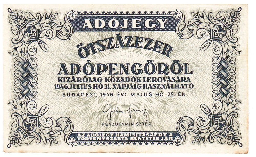 Ungaria 500 000 Otszazezer Adopengorol 1946 P-139 U18