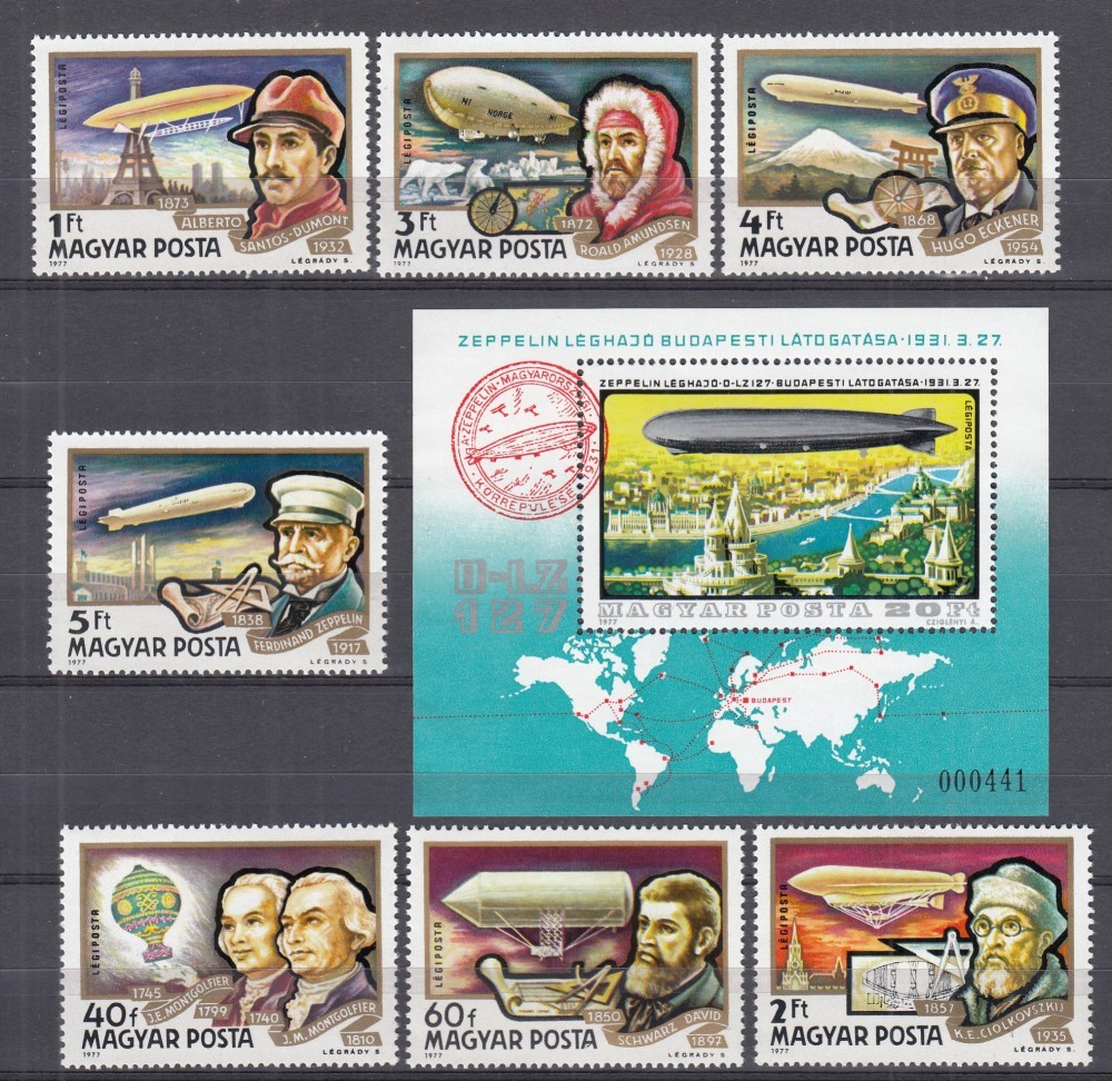UNGARIA1977 ZEPPELIN ISTORIA DIRIJABILULUI SERIE SI COLITA STARE MNH