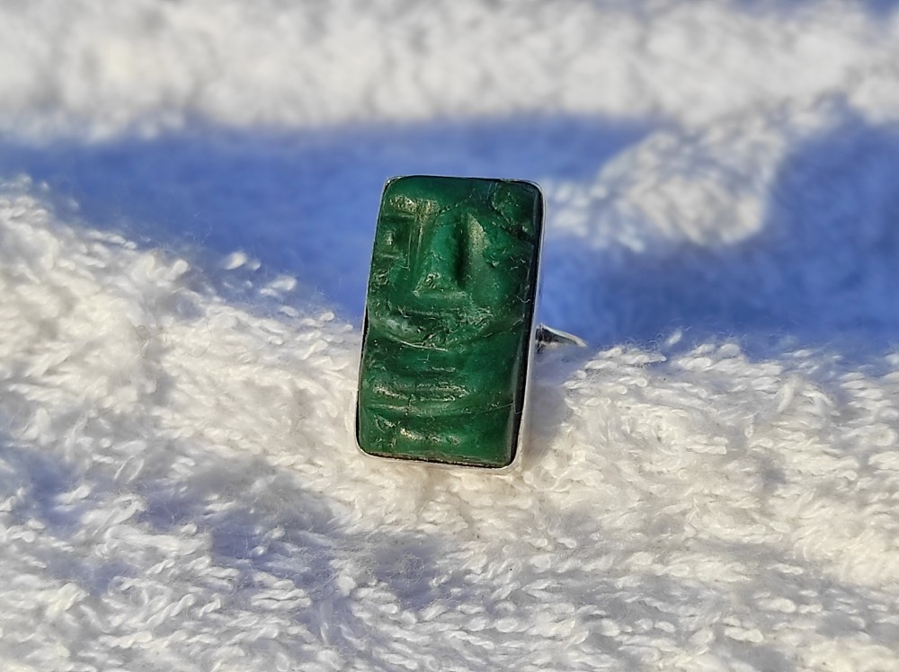 unicat INEL argint TRIBAL cu AZTEC sculptat in JAD manopera EXCEPTIONALA vechi