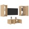 Unități de perete TV cu LED-uri, 4 piese, stejar sonoma, lemn