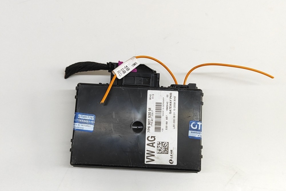 Unitate de control Gateway VW TOUAREG 7P5 . OEM: 7P6907530M,7P6907530F . Aceasta este o piesă originală de la producător, asigurând calitatea și compatibilitatea cu vehiculul dumneavoastră. . Expediem în siguranță din depozitele noastre din Europa Centrală și de Nord, folosind soluții logistice de încredere. Suntem cel mai mare depozit de piese auto din dezmembrări din Europa de Nord, oferind o gamă largă de piese second-hand precum motoare, baterii pentru vehicule electrice, cutii de viteze etc. Gama noastră include piese pentru BMW, Mercedes-Benz, Audi, VW, Seat, Toyota, Lexus, Tesla, Nissan, Peugeot, Citroen, Renault, Land Rover, Jaguar și alte mărci auto. Oferim garanție pentru piese originale și politică de retur. Când ne sunați, vă explicăm condițiile de garanție pentru fiecare caz în parte și organizăm livrarea folosind logistică modernă. Piesele uzate sunt acoperite de garanție.