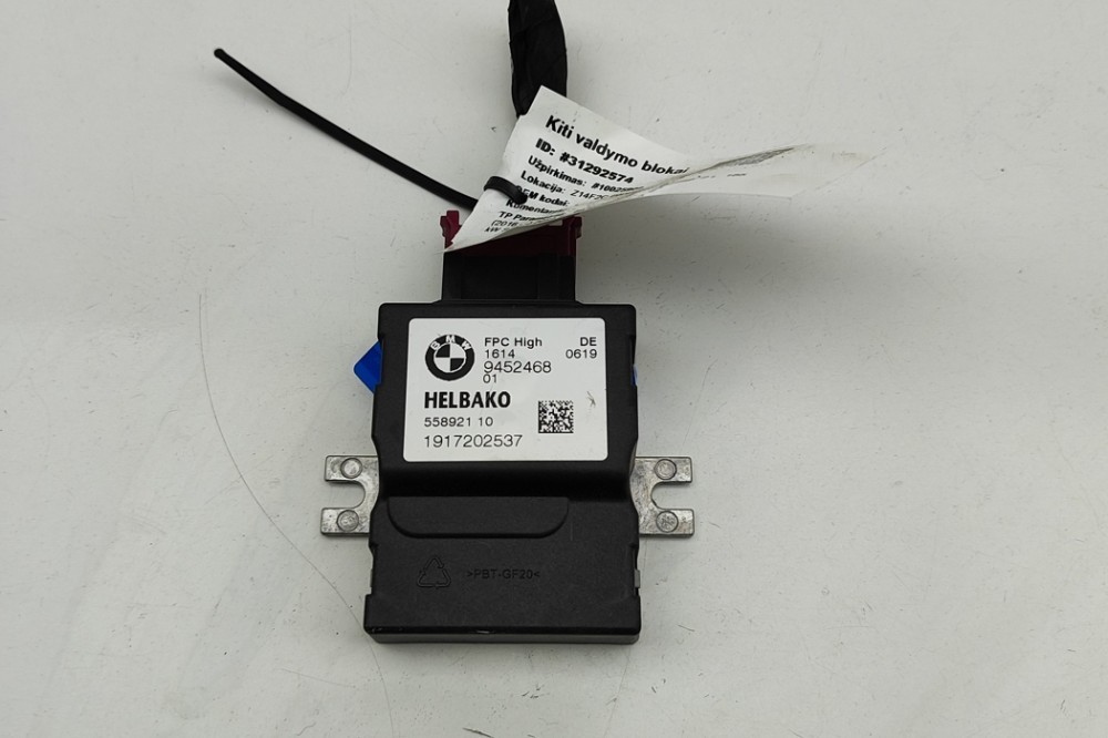 Unitate de control pompa de combustibil BMW 5 G30 . OEM: 9452468,55892110 . Expediem în siguranță din depozitele noastre din Europa Centrală și de Nord, folosind soluții logistice de încredere. Suntem cel mai mare depozit de piese auto din dezmembrări din Europa de Nord, oferind o gamă largă de piese second-hand precum motoare, baterii pentru vehicule electrice, cutii de viteze etc. Gama noastră include piese pentru BMW, Mercedes-Benz, Audi, VW, Seat, Toyota, Lexus, Tesla, Nissan, Peugeot, Citroen, Renault, Land Rover, Jaguar și alte mărci auto. Oferim garanție pentru piese originale și politică de retur. Când ne sunați, vă explicăm condițiile de garanție pentru fiecare caz în parte și organizăm livrarea folosind logistică modernă. Piesele uzate sunt acoperite de garanție.