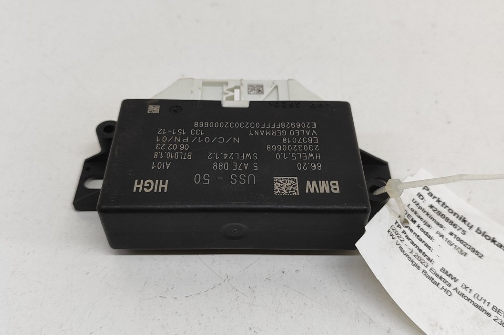 Unitate de control senzor de parcare PDC BMW iX1 U11 BEV . OEM: 5A7ED88 . Expediem în siguranță din depozitele noastre din Europa Centrală și de Nord, folosind soluții logistice de încredere. Suntem cel mai mare depozit de piese auto din dezmembrări din Europa de Nord, oferind o gamă largă de piese second-hand precum motoare, baterii pentru vehicule electrice, cutii de viteze etc. Gama noastră include piese pentru BMW, Mercedes-Benz, Audi, VW, Seat, Toyota, Lexus, Tesla, Nissan, Peugeot, Citroen, Renault, Land Rover, Jaguar și alte mărci auto. Oferim garanție pentru piese originale și politică de retur. Când ne sunați, vă explicăm condițiile de garanție pentru fiecare caz în parte și organizăm livrarea folosind logistică modernă. Piesele uzate sunt acoperite de garanție.