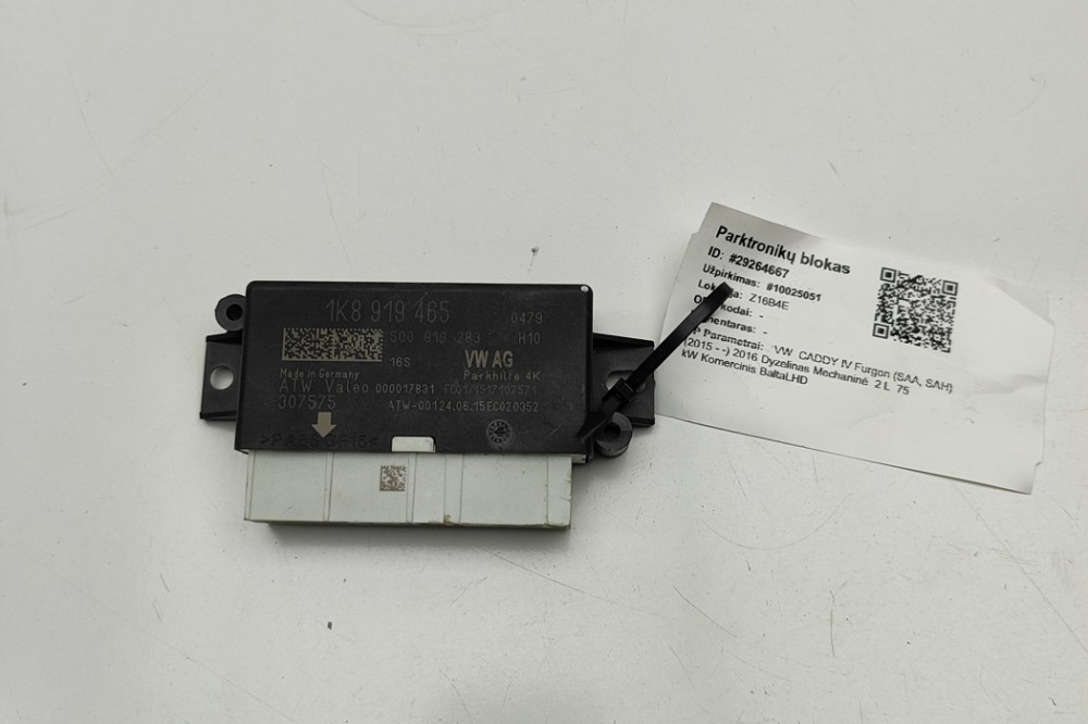 Unitate de control senzor de parcare PDC VW CADDY IV Furgon SAA, SAH . OEM: 1K8919465,5Q0919283 . Aceasta este o piesă originală de la producător, asigurând calitatea și compatibilitatea cu vehiculul dumneavoastră. . Expediem în siguranță din depozitele noastre din Europa Centrală și de Nord, folosind soluții logistice de încredere. Suntem cel mai mare depozit de piese auto din dezmembrări din Europa de Nord, oferind o gamă largă de piese second-hand precum motoare, baterii pentru vehicule electrice, cutii de viteze etc. Gama noastră include piese pentru BMW, Mercedes-Benz, Audi, VW, Seat, Toyota, Lexus, Tesla, Nissan, Peugeot, Citroen, Renault, Land Rover, Jaguar și alte mărci auto. Oferim garanție pentru piese originale și politică de retur. Când ne sunați, vă explicăm condițiile de garanție pentru fiecare caz în parte și organizăm livrarea folosind logistică modernă. Piesele uzate sunt acoperite de garanție.