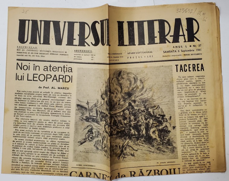 UNIVERSUL LITERAR , SAPTAMANAL , ANUL L , NR. 37 , SAMBATA , 6 SEPTEMBRIE , 1941