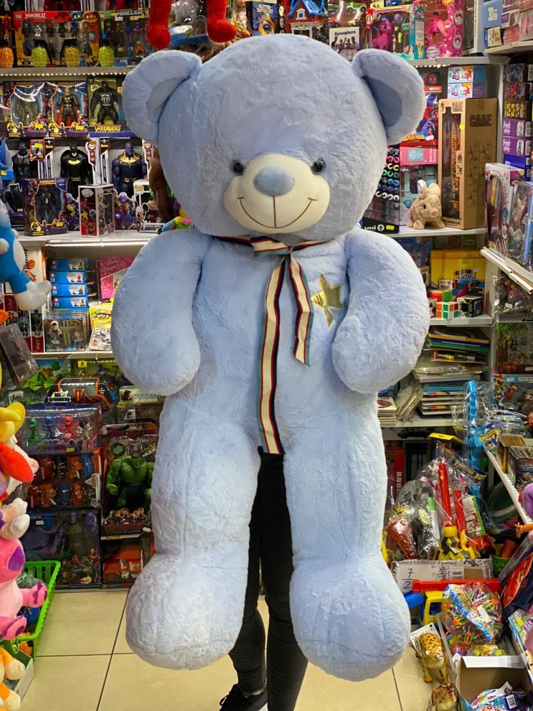 Urs albastru de plus cu stele in piept cu lungimea de 1,2 m. Este din plus catifelat si placut la atingere. Umplutura este din plus siliconat.